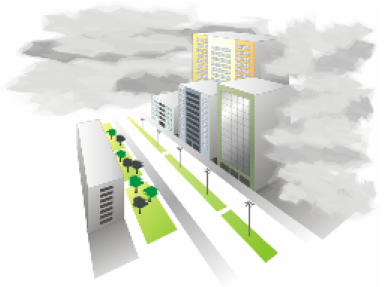 O prédio central tem a frente livre, um prédio mais alto à esquerda como um Dragão, um prédio mais baixo à direita como um Tigre e uma Tartaruga forte e protetora atrás. Essa condição é protegida e ao mesmo tempo estimulante porque a Fênix livre na frente permite a sensação de liberdade.