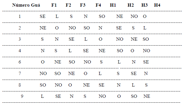 Todas as casas têm áreas fortes e áreas fracas. É favorável que a entrada principal, a sala e os quartos estejam direcionados para as melhores energias e os banheiros e depósitos para as piores energias. O Qi deve fluir livremente e a arquitetura e a decoração de interior não devem ser fatores de obstrução de seu fluxo. As pessoas têm direções mais e menos favoráveis, de acordo com a data de nascimento.